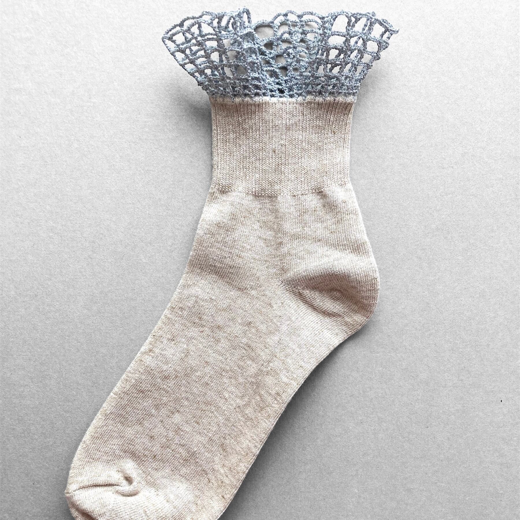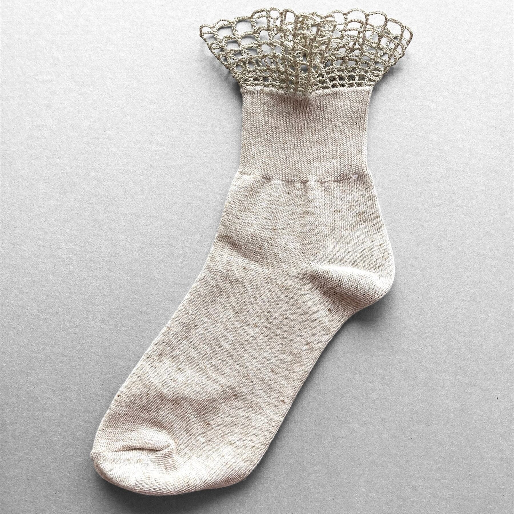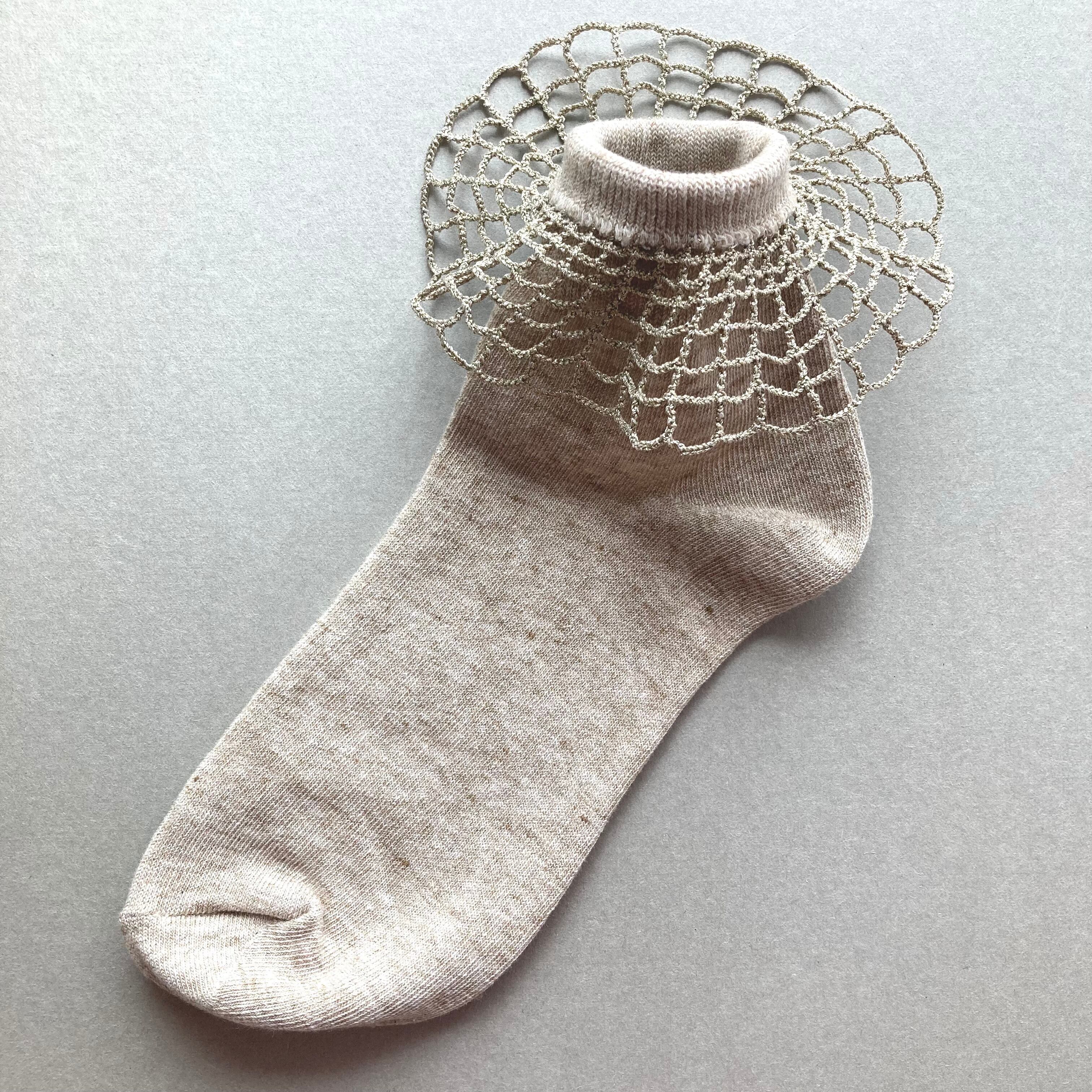 ■ 商品名:Filet crochet socks (方眼編みフリル)/ベージュ