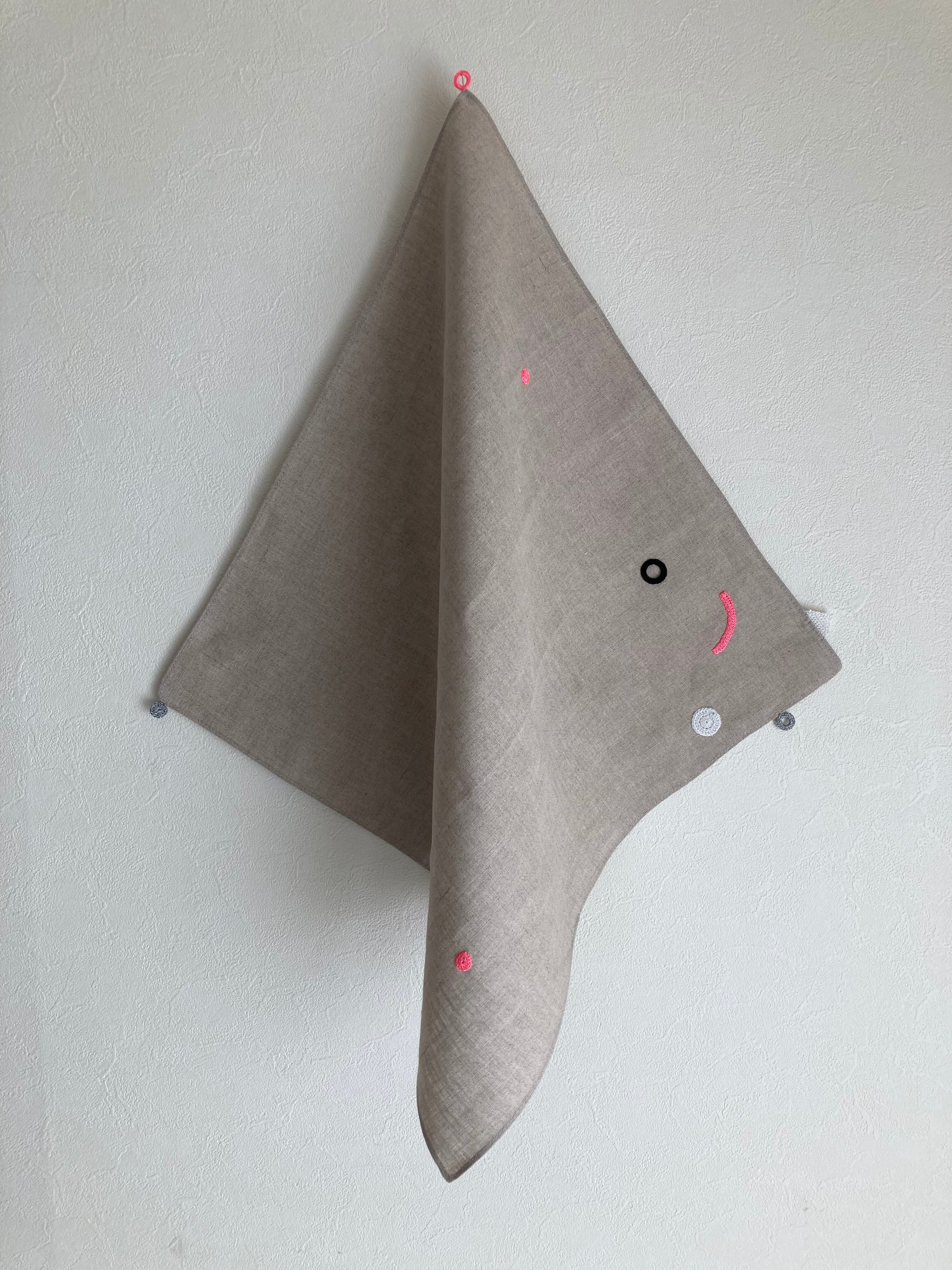 水通し前のリネンハンカチを使用しているため、特性上、若干の縮みが生じてしまいます、ご了承くださいませ。