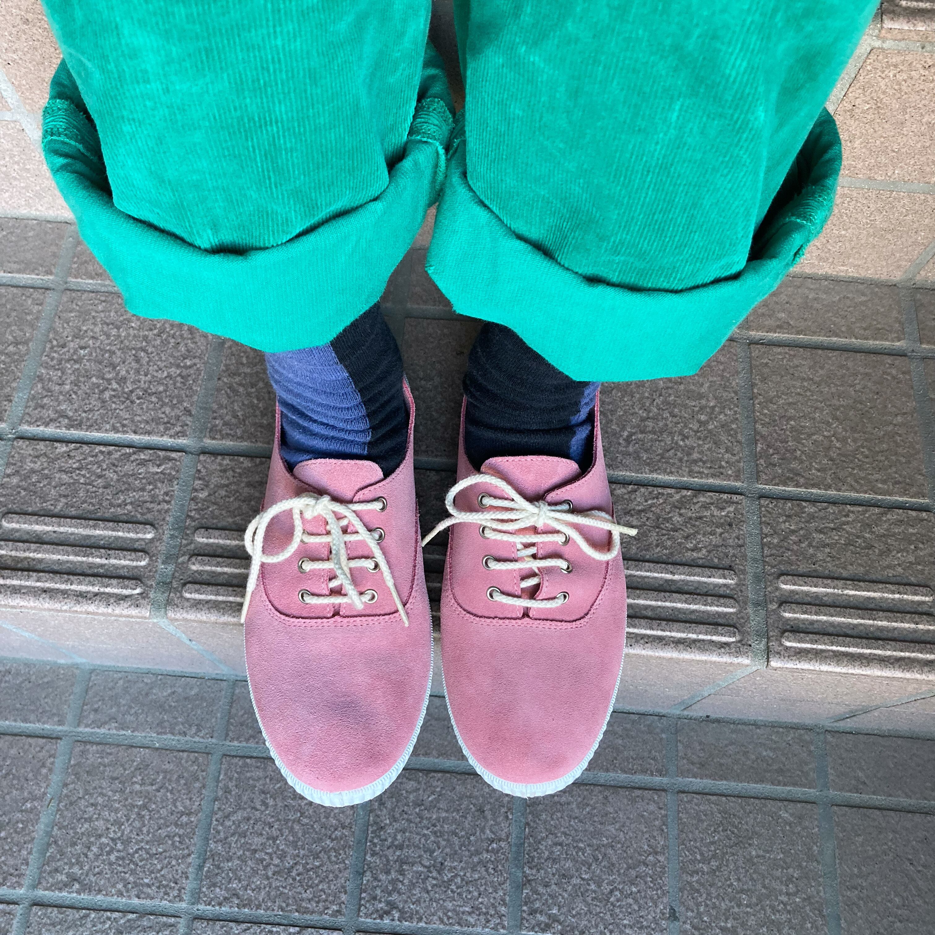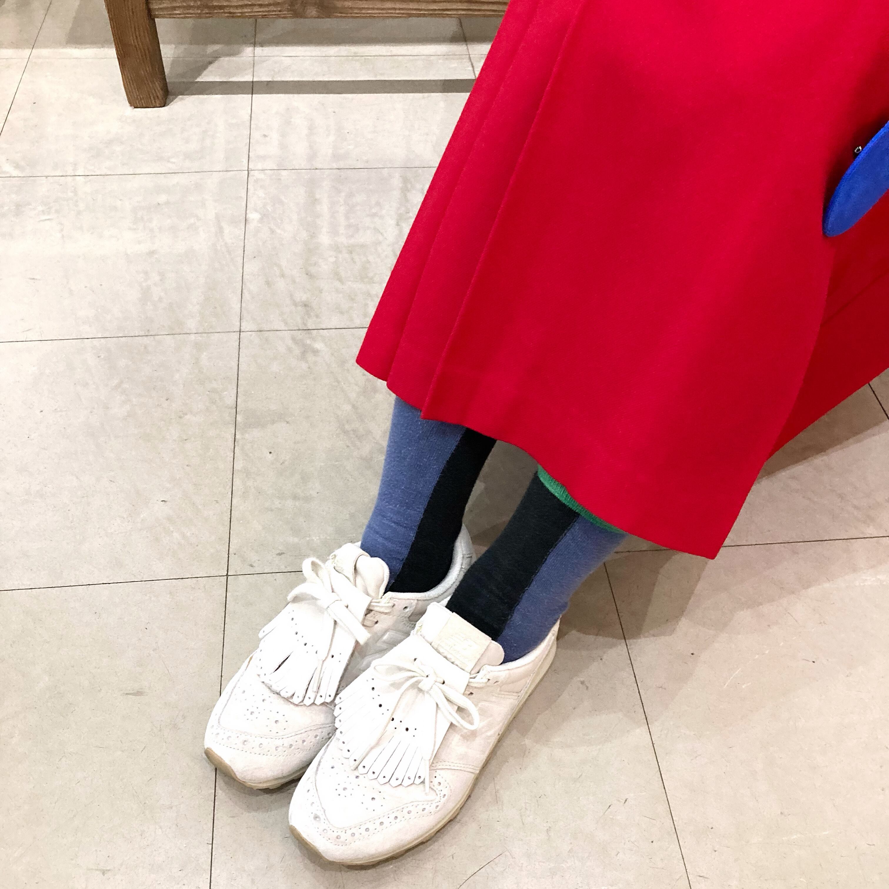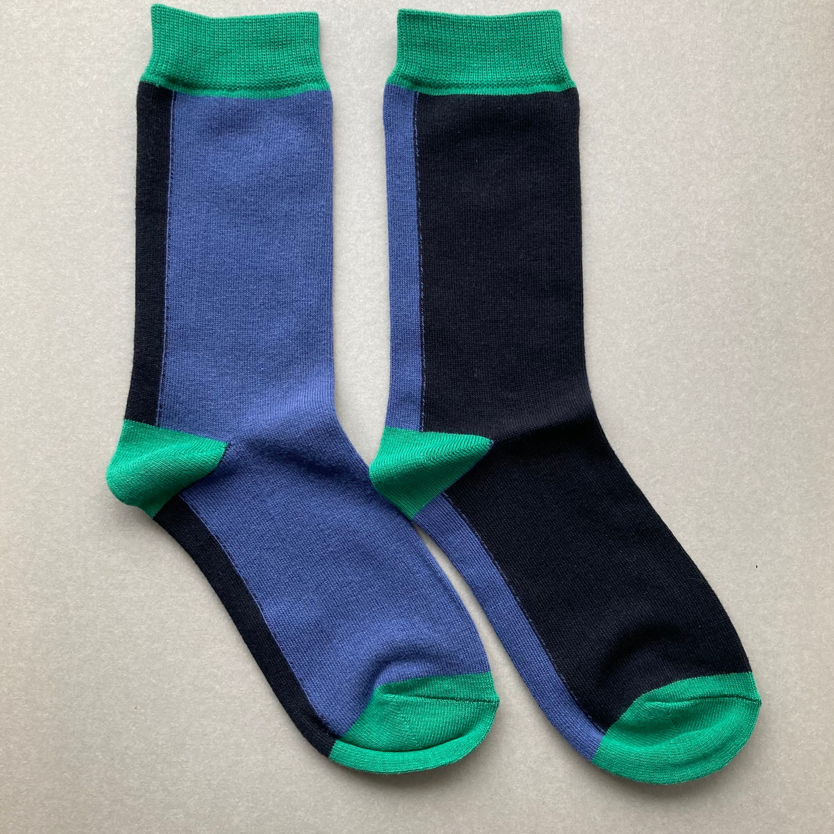 靴下ブランド hacuとのコラボで、デザインさせていただいた左右非対称のバイカラー靴下、「ASYMMETRIC」2021colorバージョン。