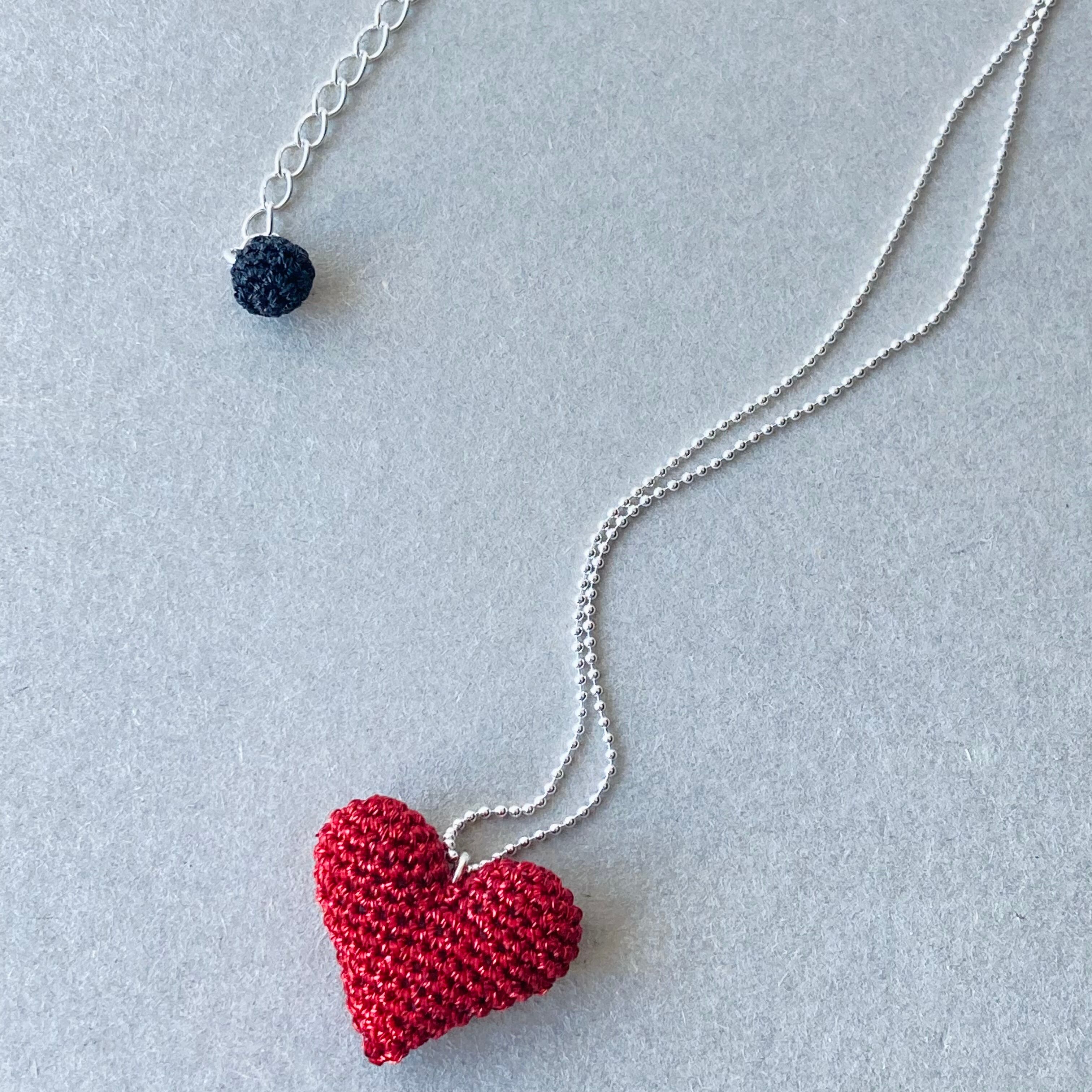 ラメ糸で編んだ、ハートのネックレス。