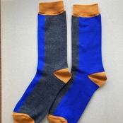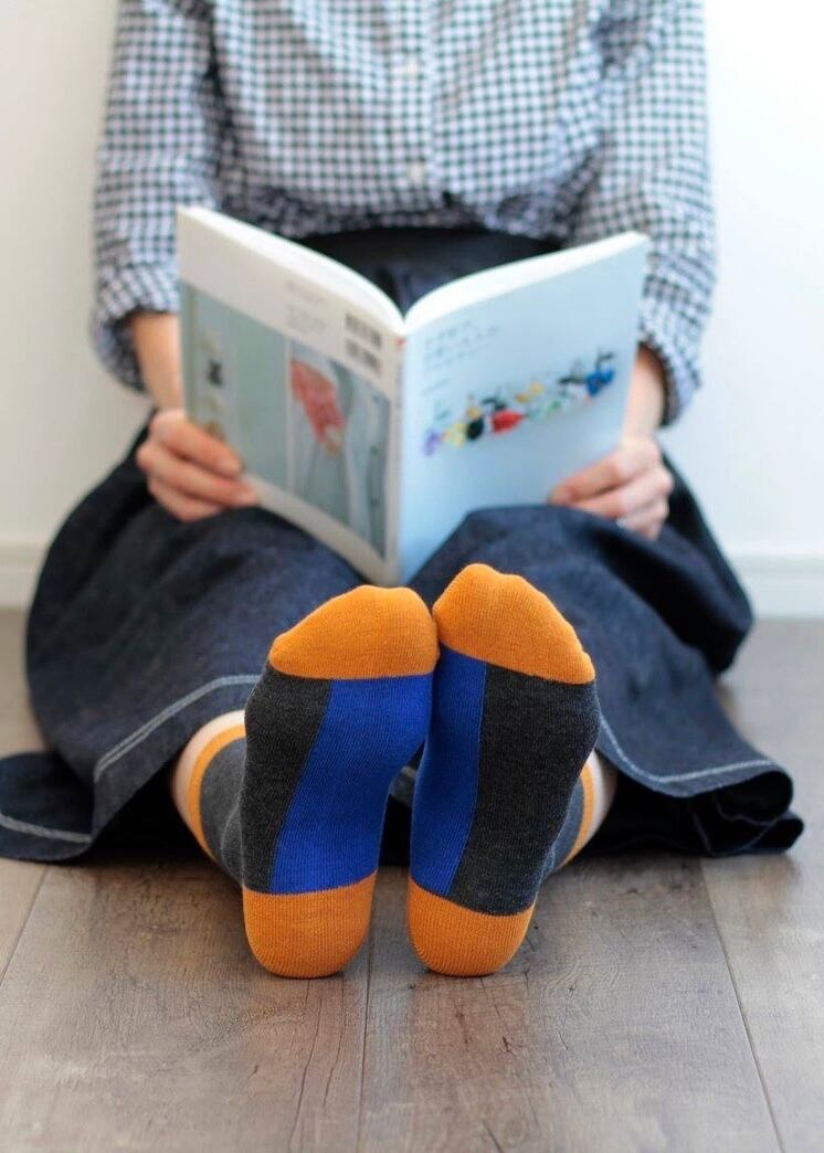 靴下ブランド hacuとのコラボで、デザインさせていただいた左右非対称のバイカラー靴下「ASYMMETRIC」2024colorバージョン。